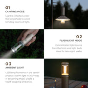 - One button operation to adjust 3 Light Modes - Camping mode, Ambient mode and Flashlight mode.